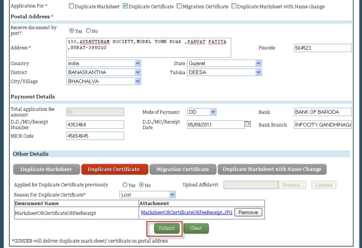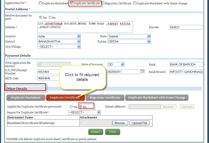 - If duplicate certificate is checked in Application , it need to fill details related to it in Other Details section as shown above.