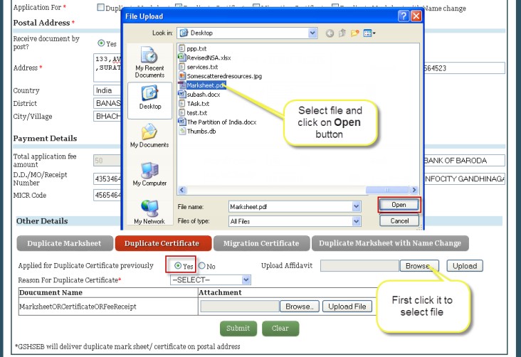 - Now collect documents like Marksheet or Certificate or Fees Receipt from student. Scan these documents and attach it in application form.Please note that application will not submit without uploading compulsory attachments.