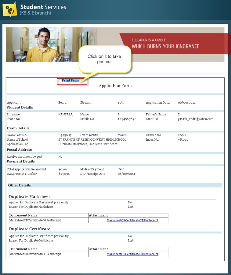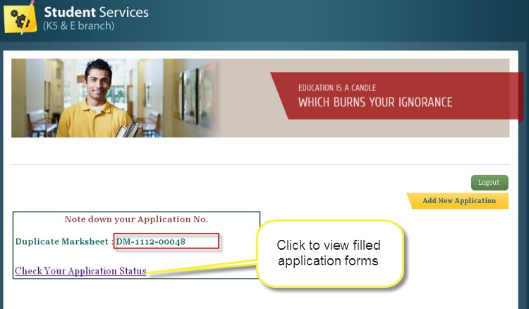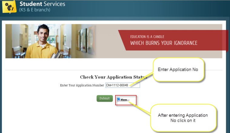 - On clicking view button it will show filled application form of entered Application No.